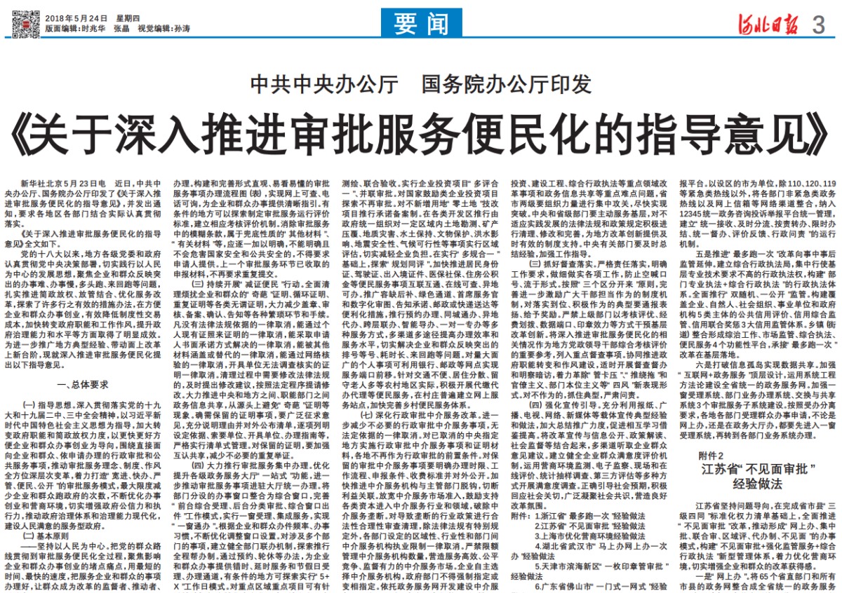 [1]《關(guān)于深入推進(jìn)審批服務(wù)便民化的指導(dǎo)意見》(中共中央辦公廳、國務(wù)院辦公廳)