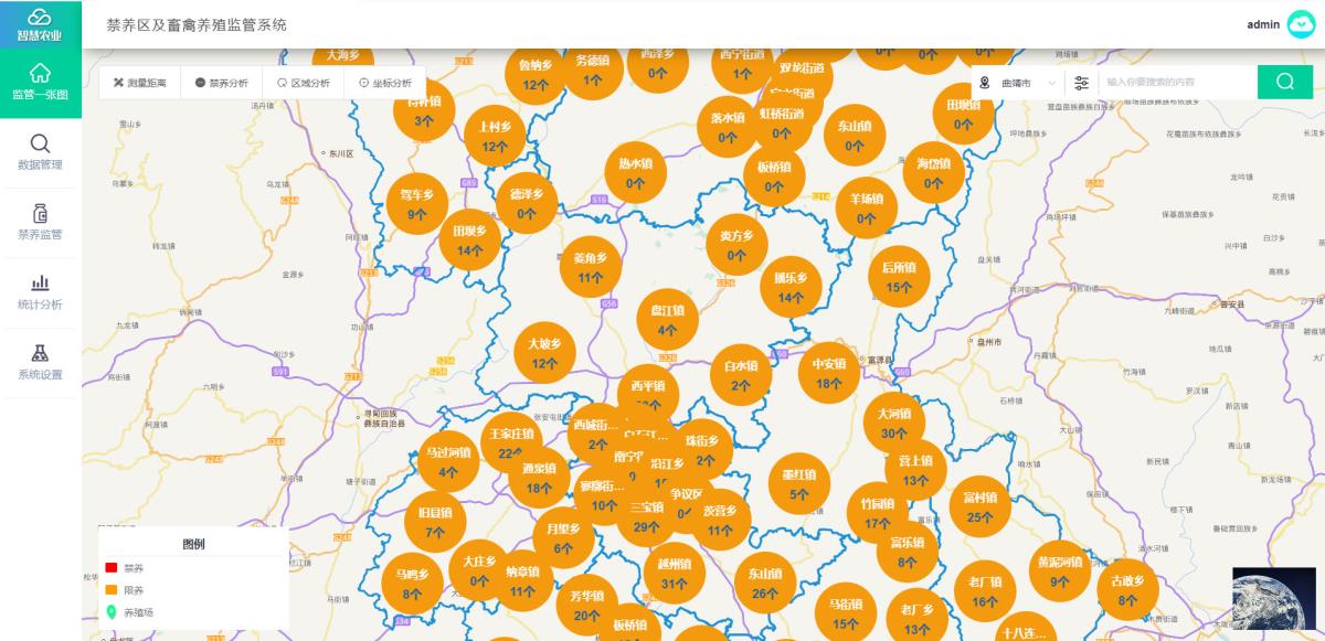 配合開(kāi)展養(yǎng)殖污染綜合治理、保護(hù)和改善生態(tài)環(huán)境工作,整合禁限養(yǎng)區(qū)與養(yǎng)殖企業(yè)信息至禁限養(yǎng)區(qū)+養(yǎng)殖監(jiān)管平臺(tái),通過(guò)一張圖展示、大數(shù)據(jù)分析、監(jiān)督執(zhí)法工作管理、專(zhuān)題數(shù)據(jù)挖掘等技術(shù),幫助監(jiān)管部門(mén)優(yōu)化養(yǎng)殖企業(yè)結(jié)構(gòu)和布局,加強(qiáng)重點(diǎn)區(qū)域、重點(diǎn)流域的環(huán)境保護(hù)。